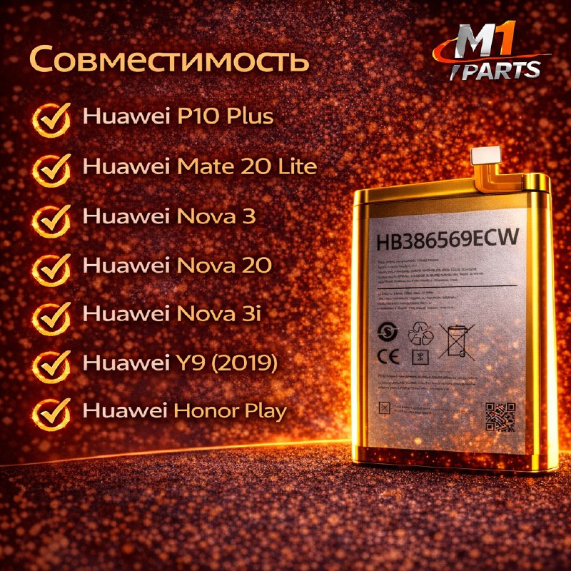 Бренд M1 parts хорошо зарекомендовал себя на рынке и широко используется в авторизованных сервисных центрах благодаря высокому качАккумулятор для Huawei P10 Plus / Mate 20 Lite / Nova 3 / Play / 20 (HB386589ECW) Premium Class Бренд: M1Parts Комплектация: только аккумулятор Аккумулятор HB386589ECW M1Parts для Huawei P10 Plus / Mate 20 Lite / Nova 3 / Play / 20, Premium Class Аккумулятор M1Parts HB386589ECW предназначен для замены изношенной батареи смартфонов Huawei P10 Plus, Mate 20 Lite, Nova 3, Nova Play и Nova 20. Поддерживает заявленную ёмкость и стабильную подачу питания, обеспечивая надёжную работу устройства без внезапных отключений. Продукция проходит контроль качества перед отправкой. В комплекте поставляется только аккумулятор. Перед покупкой рекомендуется проверить совместимость с моделью смартфона.еству и соответствию стандартам.